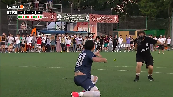 2-я пара бьющих. Герман Петросов у «На спорте» и Салам Ашурмамадов у «Броуков». Снова буллиты. Гера обыграл вратаря и сделал счет 2:0, но Салам, кажется, забил самый красивый гол этой серии – Ашурмамадов на очень быстром дриблинге начал сближаться с кипером, заметил, что тот присел и перекинул его черпаком – 2:1.
