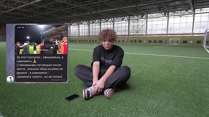 Когда конфликт чуть утих, Мбэйп решил добавить огня и со спины кинул мяч в Чужого. Но попал в тренера «Амкала» Михалыча. Пришлось извиняться.