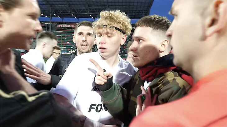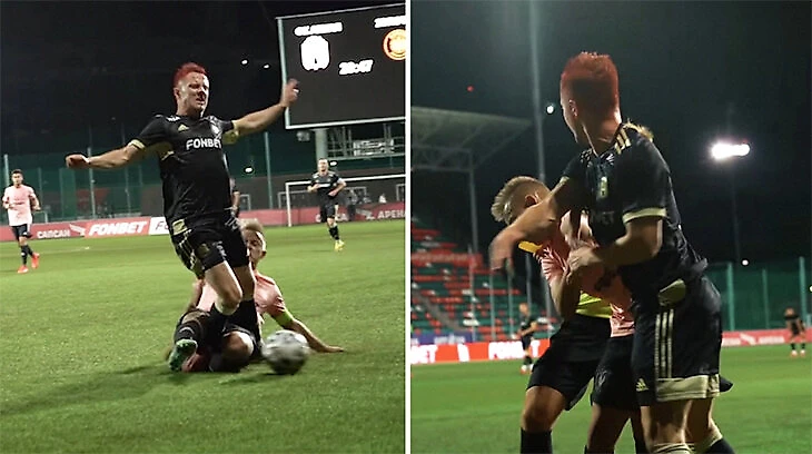 У 2Drots, наоборот, мало что получалось, игроки нервничали. Кутуз исполнил Зидана и боднул головой Феликса, но его не удалили. Как же повезло, что тогда еще не внедрили медийный ВАР! Вратарь 2D Джуси столкнулся с Форзяром, судья не до конца разобрался в моменте и удалил вратаря. В Прокопа с трибун прилетела бутылка с водой, а тот решил кинуть ее обратно в болельщиков – за это получил массу хейта. А потом и Руслан Сибаев порвал кресты.