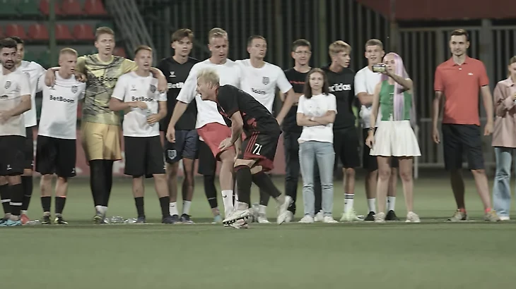 • В полуфинале «Броуки» играли с «Амкалом». Это мало было похоже на футбол, скорее это был матч-скандал. Маврин и Чужой ругались с Тигиевым и всеми остальными. В результате почти не было моментов (0:0), и началась серия пенальти.