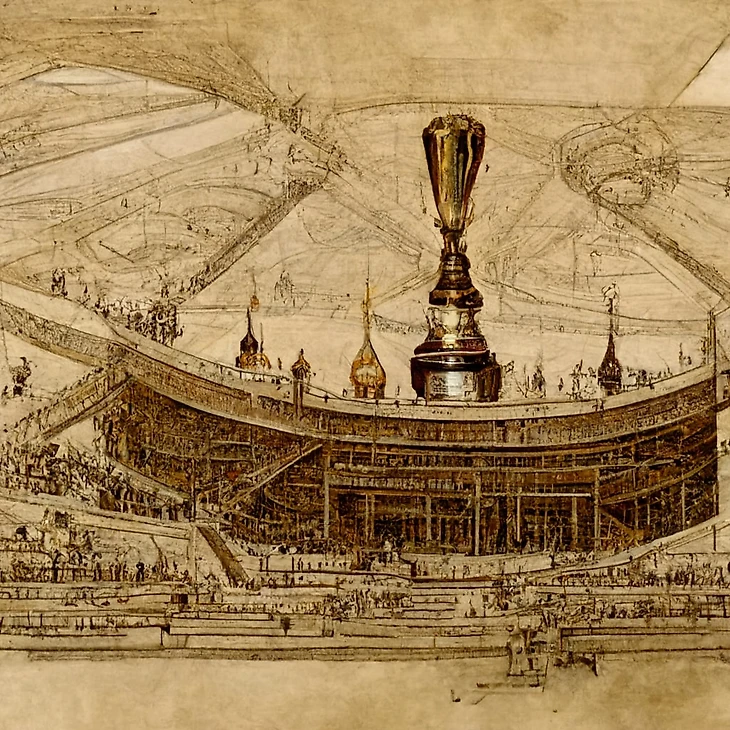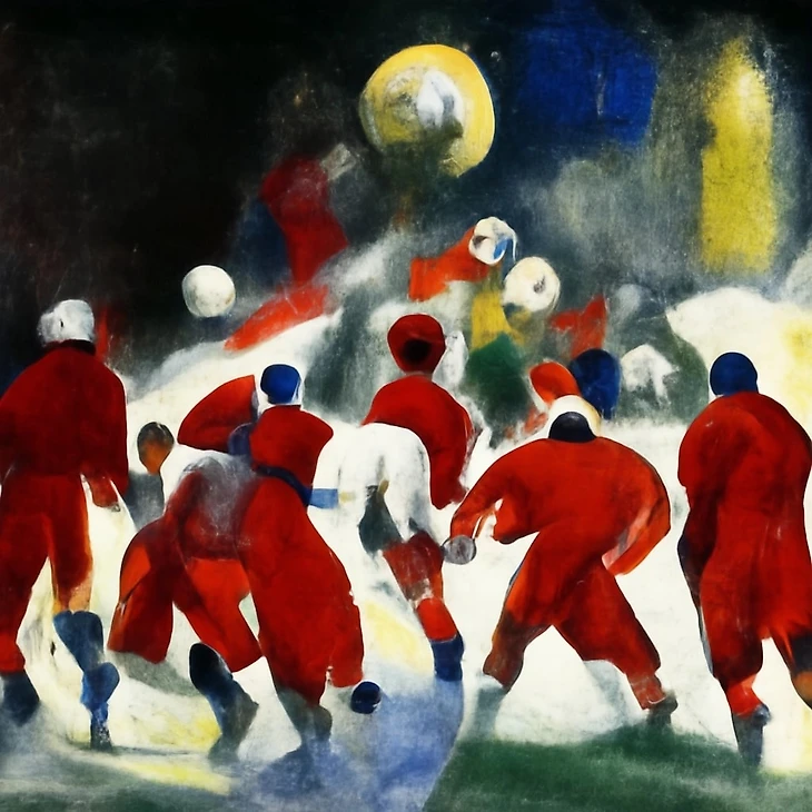 Леонардо да Винчи был одним из величайших художников эпохи Возрождения. Также он был музыкантом, изобретателем, инженером и скульптором. В общем Леонардо – очень разносторонний человек. Возможно, если футбол уже изобрели к XV-XVI веку, то он написал бы картину о матче «Броуков» и Reality. Вот как это представляет себе Midjourney.