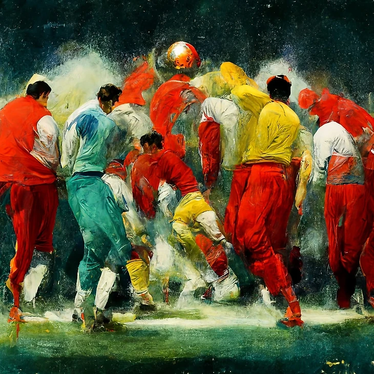Энди Уорхол один из основоположников поп-арт движения. Он был продюсером первой альтернативной рок-группы The Velvet Underground. В наши дни у него могла бы быть даже своя медиафутбольная команда. А вот как видит финал нейросеть в стиле Уорхола.