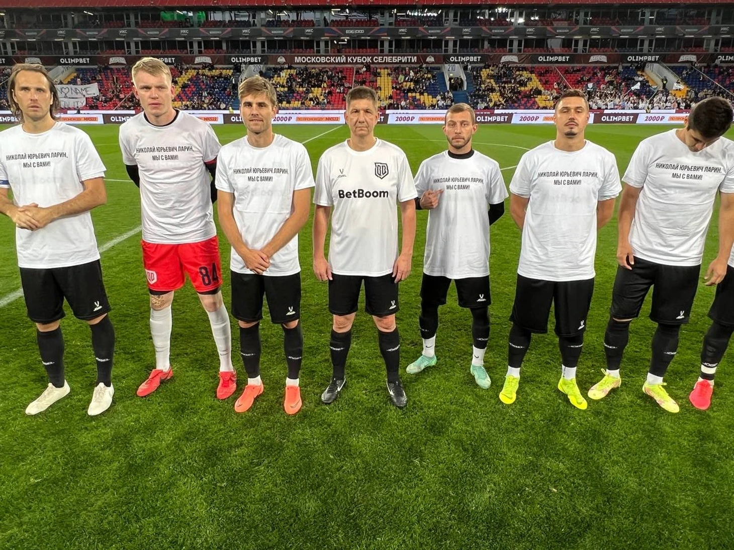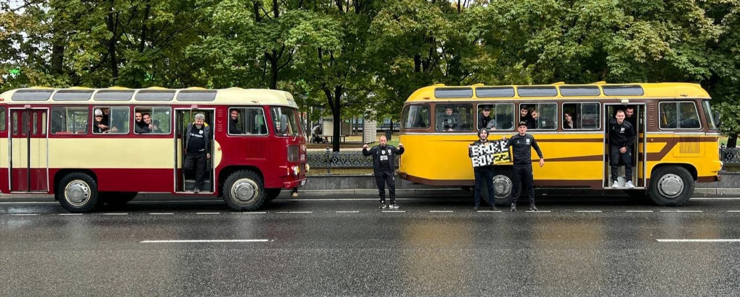 Обе команды устроили перед матчем перформанс. «Броуки» приехали на двух ретро-автобусах. И вышли на матч в специальных футболках в поддержку Николая Ларина, которого судят за мошенничество.