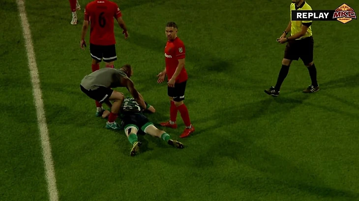 Все началось с матча группового этапа Olimpbet МКС-2022 «Деньги» – Reality. В концовке (при счете, который не устраивал Reality) игрок «Денег» Гендузи оказался на газоне. Босс Reality Фил Кострубов, находившийся на бровке, вышел на поле и стал поднимать соперника – это привело к конфликту и потасовке.