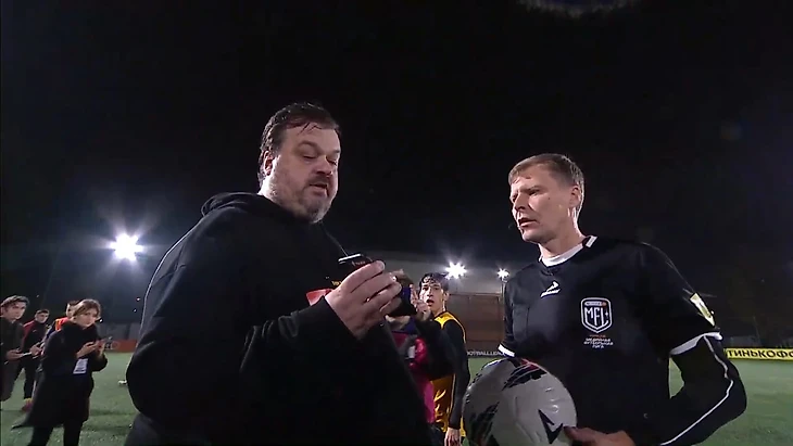 Сразу после финального свистка Уткин подошел к арбитру и, что важно, в максимально уважительном тоне высказал ему свое несогласие со вторым забитым мячом «Наших Парней».