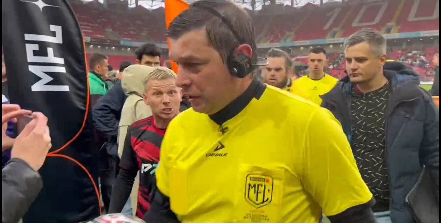 В главном матче 3-го тура «Амкал» – «Родина Медиа» было достаточно горячих эпизодов: пенальти, спорный гол, просмотры ВАР. На арбитра Жилинского постоянно давил Текила. В конце игры реф пообщался с директором «Родины Медиа» один на один – этот разговор попал в трансляцию. То, что обычно выкладывали в телеграм-каналы, стало доступно и в прямом эфире.