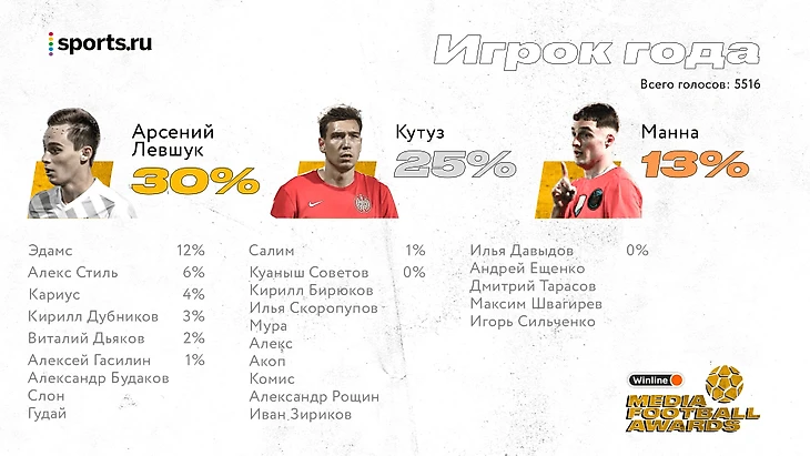 Winline Медиалига и Sports.ru завершили голосование на приз «Игрок года».