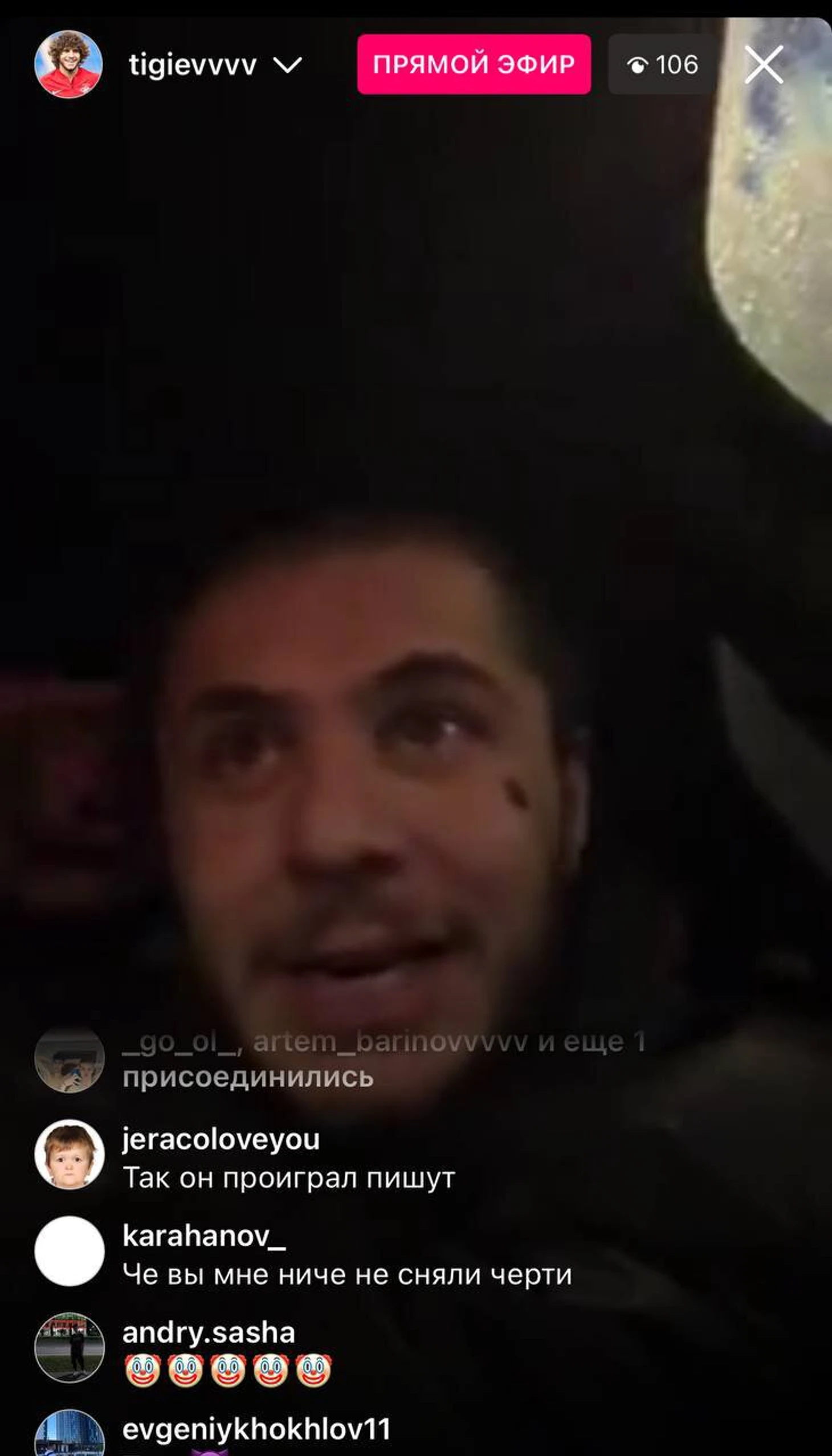 Позже Тигиев выложил видео, на котором сказал, что с ним все хорошо.