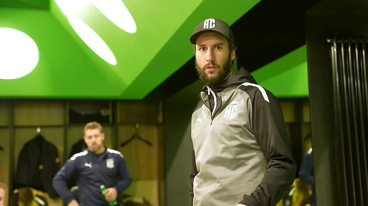 Кадр после игры: автобус «На Спорте», внутри – неон и атмосфера абсолютного праздника. За автобусом бегут фанаты, автобус останавливается, игроки фоткаются с болельщиками. В этот момент Володя XXL бросил легендарное: «Обыграть «Амкал» – это как пройти игру. Но что дальше ты не знаешь. В любом случае, подписывайтесь на нас. Мы реально делаем что-то новое».