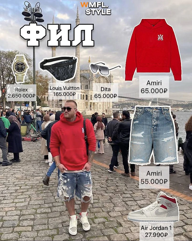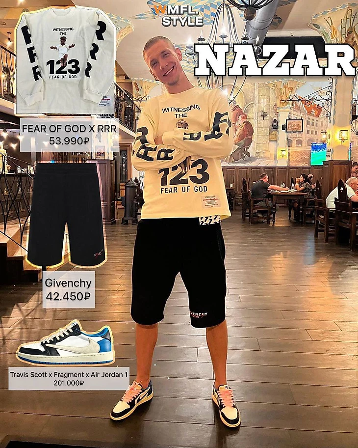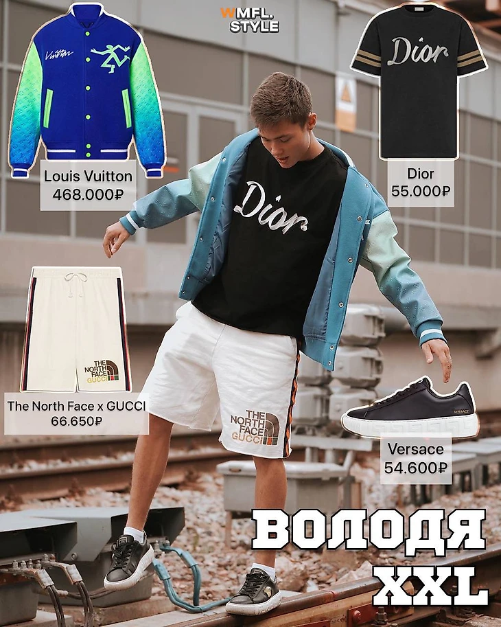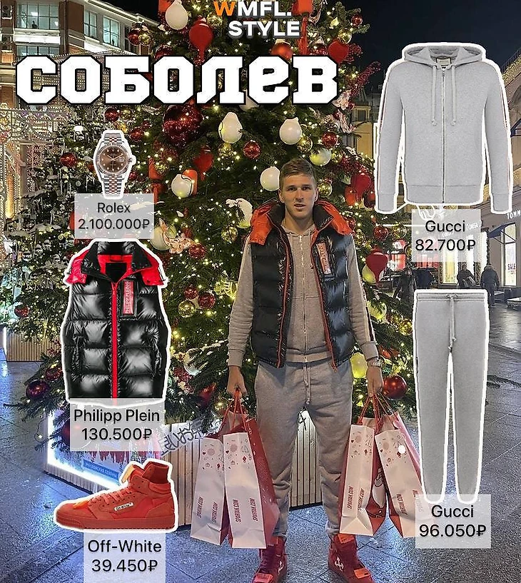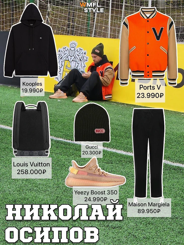 Аутфит Александра Соболева, президента «Бей Беги», в стиле типичного русского футболиста. Хотя подождите…