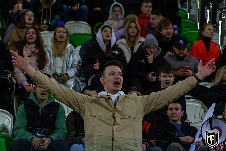 Начнем с позднего матча первого дня – «Амкал» против GOATS. Фанатов «Козлов» легко узнать на трибуне.
