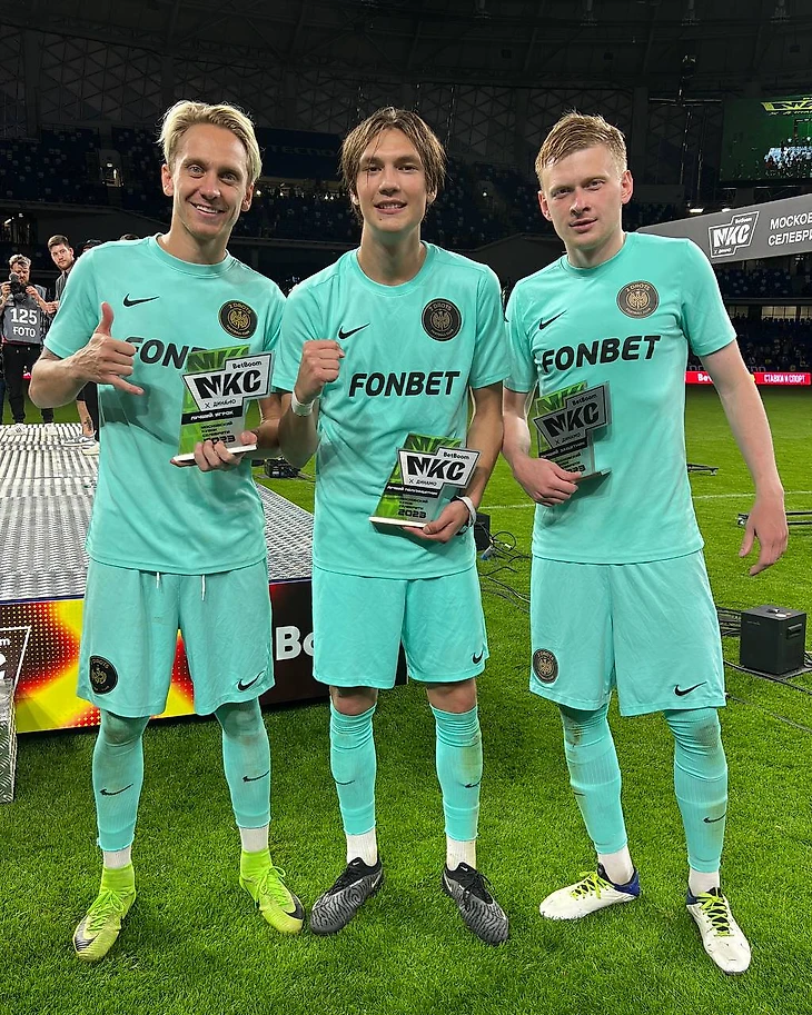 Затем Денис побежал к фанатской трибуне «дротов» и подарил болельщице поднос, на котором выносили медали. В ответ получил именной плакат и море благодарностей. После Дениса ждал еще один бонус – приз лучшему игроку МКС-2023.