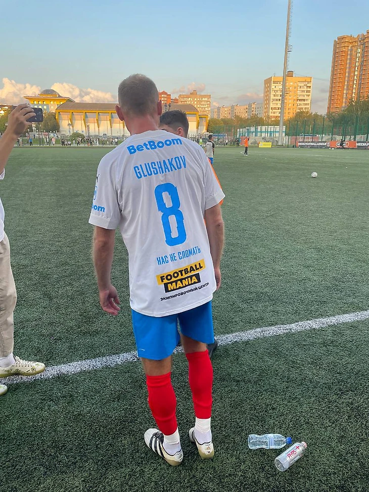 Они рубились в Одинцово с «Бей Беги». Перед стартом второго тайма на бровке появился Денис Глушаков. Конечно, под любимой восьмеркой.