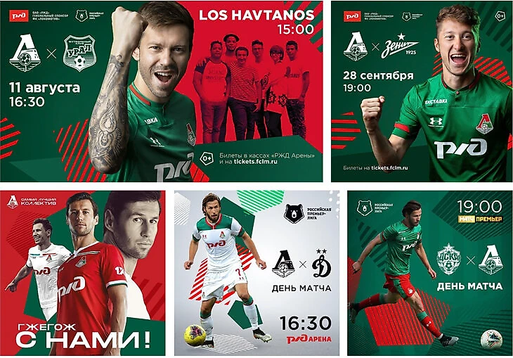 Мы в «Локо» стали делать акценты на другом. На абстрактных графических формах, искали лучшие решения со шрифтами, думали, как подать информацию так, чтобы ее было легче воспринимать. Еще одними из первых в России начали использовать в афишах монохромные логотипы клубов. Я помню мы много времени уделяли эмблемам команд соперниц. Отрисовывали эмблемы в монохроме сами с нуля, так как у многих команд в РПЛ не было монохромных эмблем, только цветные.
