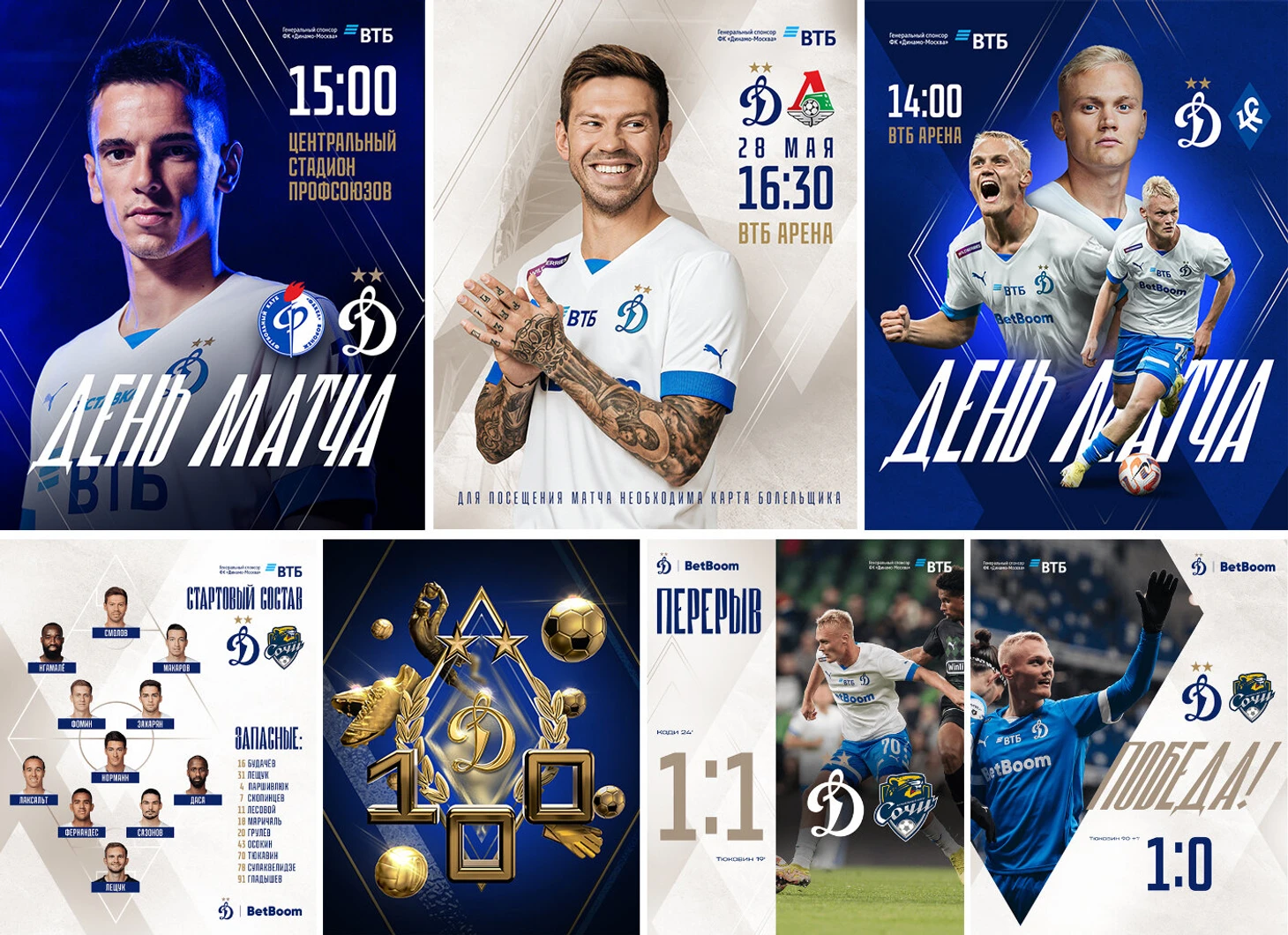 Ребята, которых я собрал в «Локо», умели все. Начиная от статики и заканчивая 3D визуализацией, моушн-дизайном. Например Павел Мозеров – он офигенно компонует футболистов, составляет невероятные композиции – вот пара примеров. Со временем я забрал его в «Динамо» из «Локомотива», и после моего ухода, он сейчас там главный.