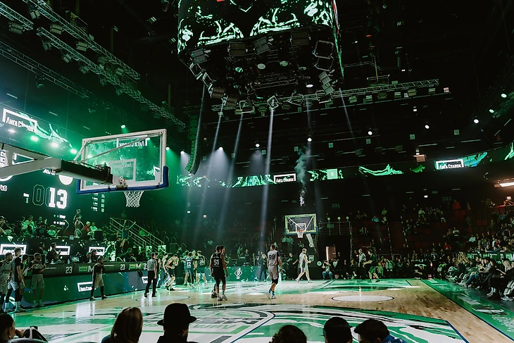 ● Есть зона четырехочкового или mad shot. Она включается дважды за первые 8 минут матча и остается активной на последние 2 минуты. Попадание из этой зоны засчитывается за четыре очка.