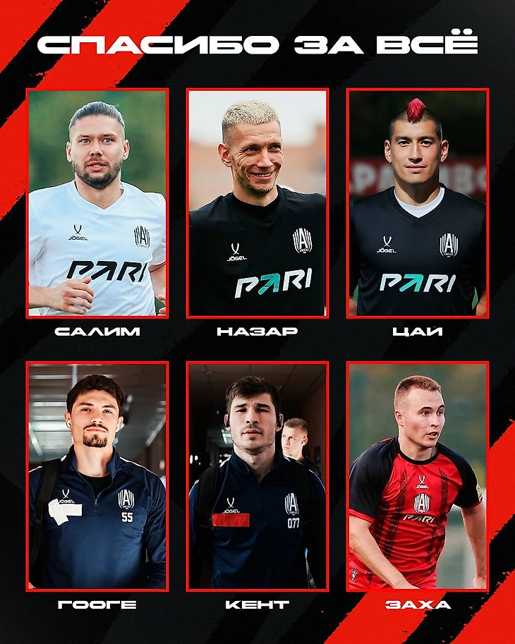 Сослан сразу принялся расчищать состав и исключил пять футболистов: защитников Ивана Захарова и Владимира Лобкарева, хавбеков Салима и Назара, нападающего Антона Гооге. Еще клуб покинул Вадим Цай, у которого закончилась аренда.