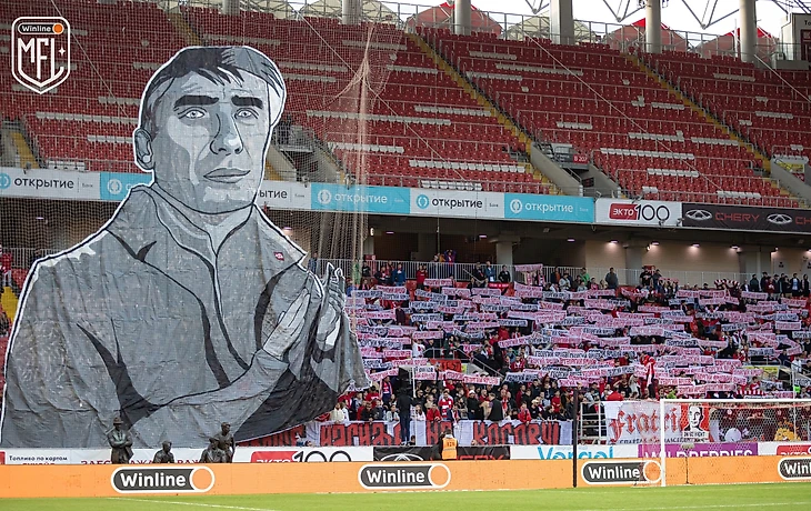 Во-вторых, на игру пришли не только казуальные зрители, но и фанаты «Спартака». Они подготовили несколько перформансов. Один из них – в честь Юрия Гаврилова, который находился в больнице с подозрением на инсульт. А еще огромный баннер в часть легендарного Георгия Ярцева.