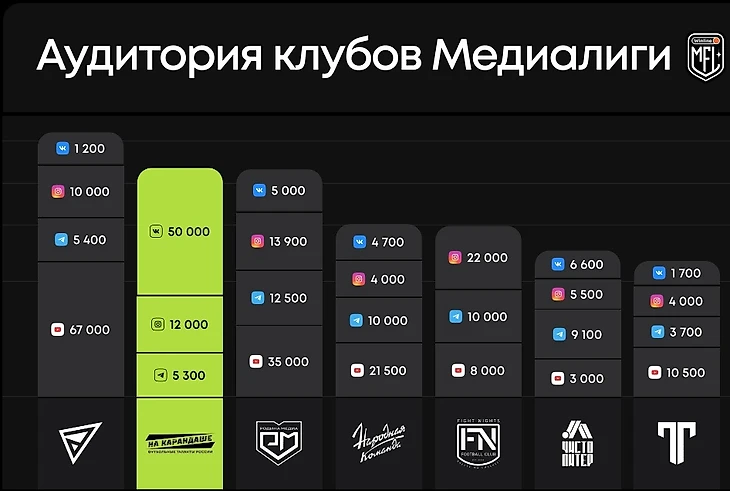 Мы проводили анализ аудитории, и уже сейчас у нас совокупная аудитория больше, чем у «Титана», «Родины Медиа», «Народной», Fight Nights, «Чисто Питер» и многих других. И это без ютуба, который мы не заводили просто из-за ненадобности. Если брать только подписчиков VK, где у нас 51 тысяча, – мы вообще третьи во всей лиге, уступаем только 2Drots и «Амкалу».