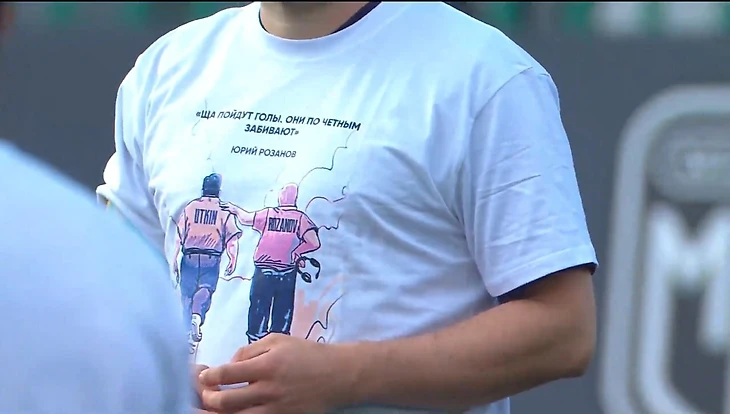 Команды вышли в футболках, посвященных не только Василию, но и Юрию Розанову. На каждой – своя цитата.