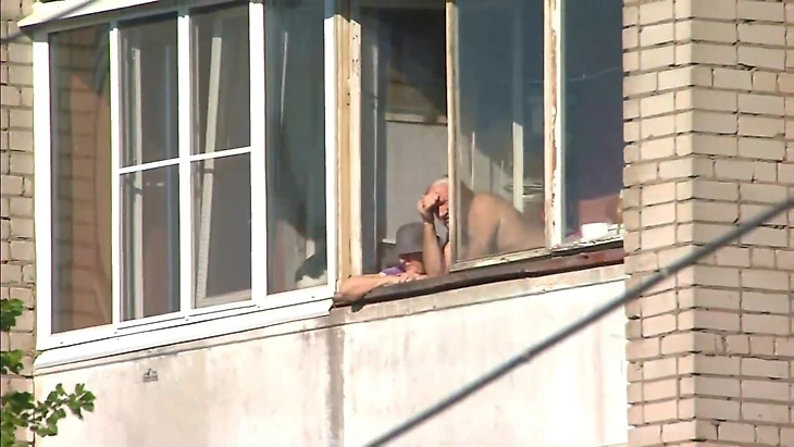 Классика: зритель из ближайшей к стадиону многоэтажки.