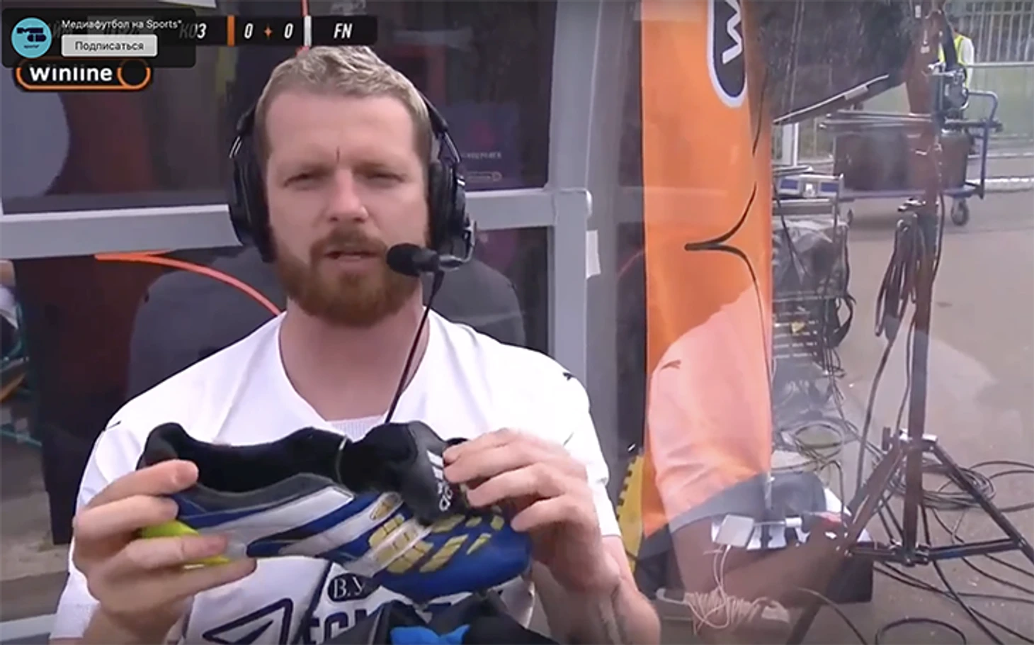 У меня есть такие ботинки – я купил их на Савеловском рынке за 2 300 рублей. Женщина сказала, что они долго прослужат. Вот эти я подарил себе на 35 лет. Классные «Предаторы», они стоили 29 990 рублей в adidas на Пресне. Еще имеются шорты, в них я иногда сплю. Здесь наушники проводные. И есть капитанская повязка, потому что в «Матч ТВ» на некоторых турнирах я все еще капитан».