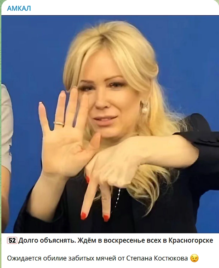 «Амкал» фотографией Мизулиной анонсировал матч против ФК «10». 52 – номер форварда «Амкала» Степана Костюкова.