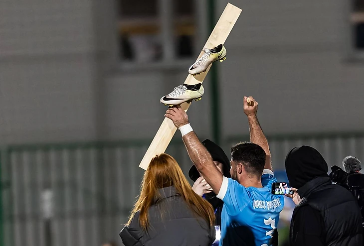 Уволенный из «Титана» Шамиль Курбанов ради «Банки» возобновил карьеру игрока – а в последнем туре повесил бутсы на гвоздь. Буквально.