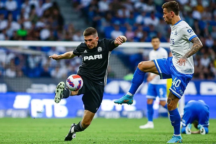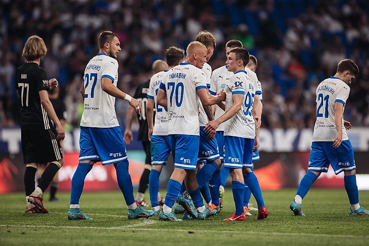 В концовке игры «Динамо» забило четырежды за 10 минут, а Константин Тюкавин оформил дубль. Бело-голубые разгромили «Амкал» 5:0.