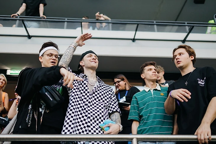 В вип-ложе «ВТБ Арены» собралось много селебрити: Филипп Киркоров, Тимати, Мот, Джиган, Navai, Валерия и Иосиф Пригожин.