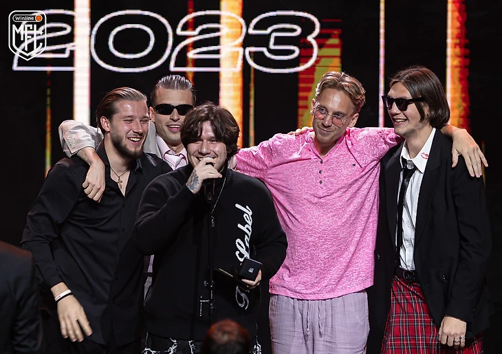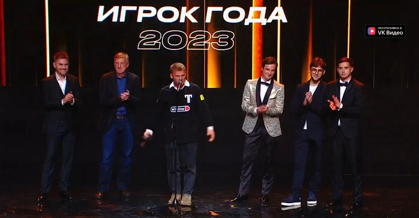 Василий Маврин – лучший игрок 2023 года. Несмотря на строгий дресс-код, пришел в джерси «Титана» и кроссовках. А еще разделил награду с Бирей, Скоропупом и Манной – пригласил их на сцену и назвал лучшими. И призвал Сослана Гатагова подписать его в «Амкал». Рок-звезда!