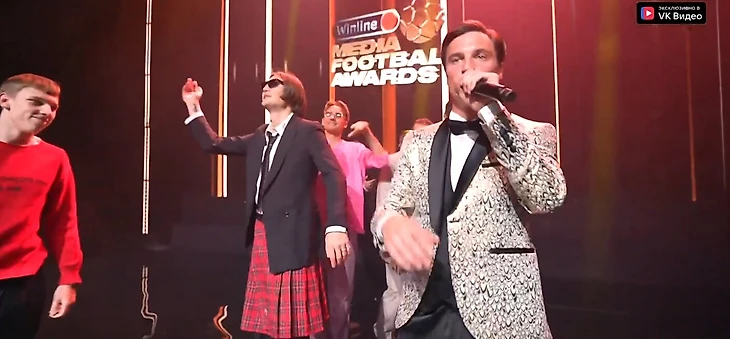 На открытии премии танцевали чирлидерши, а ближе к концу Багдасар: игрок добрался до сцены и зажег под «Тополиный пух» Иванушек.