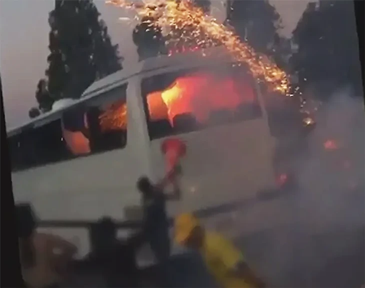 Толпа турков с бутылками, мачетами атаковали автобус, забрасывали коктейли Молотова, файеры. Водитель убежал, что делать непонятно. Но турки не понимали как зайти внутрь – в дверях их встречали наши. В итоге кто-то из ребят прыгнул за руль и поехал в сторону стадиона.