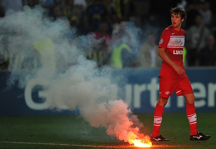 Довез, но высадил не у гостевого сектора – пришлось вокруг стадиона пробираться, а там все в желто-синих цветах. Сотрудники УЕФА показали путь, идем – как в психушке: бросают монеты, кто-то орет, чуть ли не лает. Подъезжает автобус с парнями, весь разбитый – как из «Безумного Макса», а из-за дыма слышен заряд «Девяностые». Все это видят активные фанаты «Фенербахче». Включается местный ОМОН, но турки уже бегут на нас. Спас местный стюард, который просто запихнул в подтрибунную клетку и закрыл ворота.