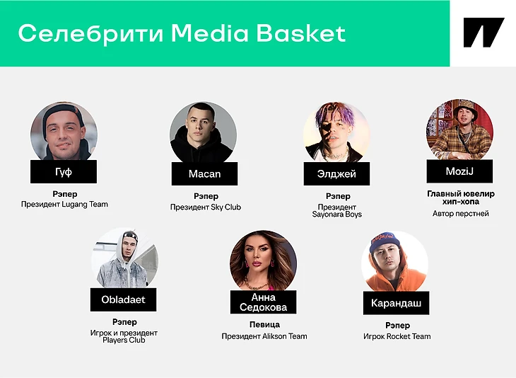 Популярный в начале 10-х рэпер Словетский тоже в Media Basket. Закрывает три позиции: президента Blatosphera, игрока и хэдлайнера музыкальных выступлений.