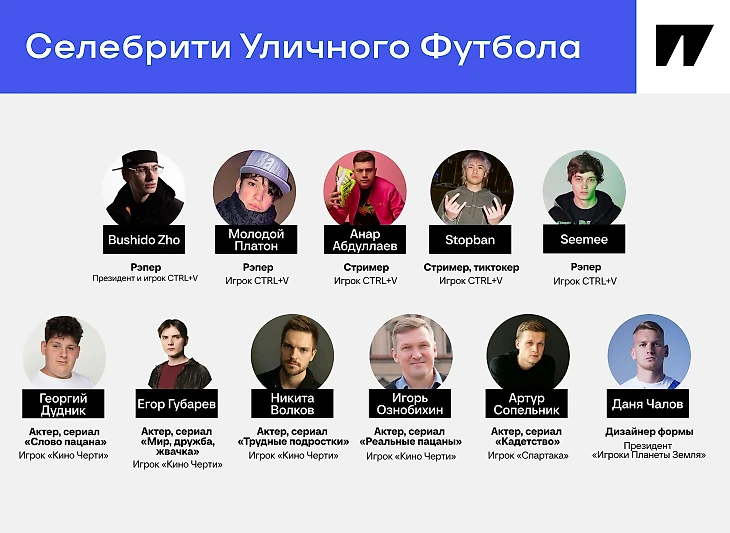 С лета 2024-го в медиафутболе проводят еще один турнир – Winline Уличный Футбол. Ивент сразу раскрутился – отчасти из-за того самого финала с Артемом Дзюбой и «Амкалом». Отчасти из-за того, что аудитории не хватало такого лайтового формата: матчи в коробке, играют звезды медиафутбола. И, конечно, селебрити, не связанные с индустрией.