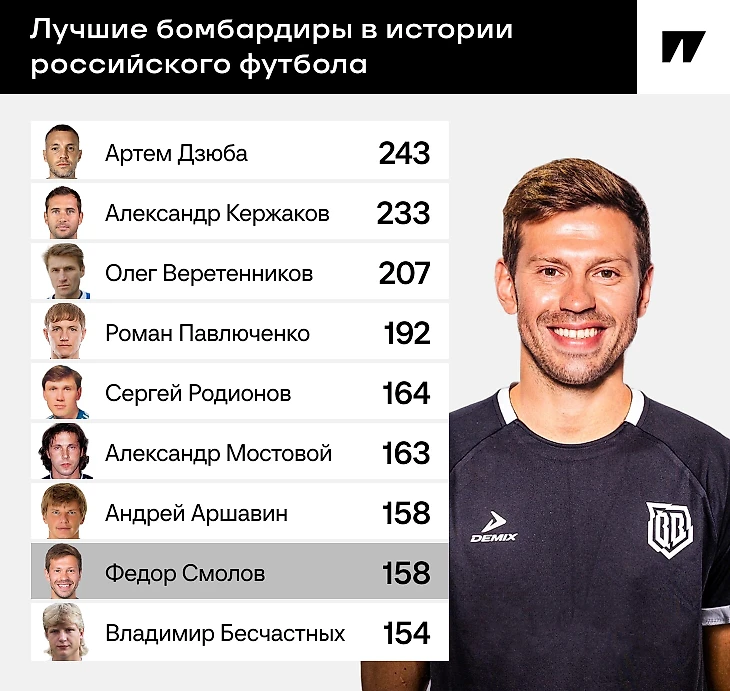 Федор догнал Аршавина по голам в российском футболе, теперь у обоих по 158. И есть шанс выйти вперед: во вторник, в 1/32 финала, «Броуки» сыграют с родным для Смолова саратовским «Соколом».
