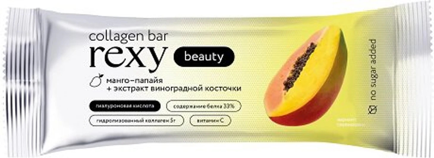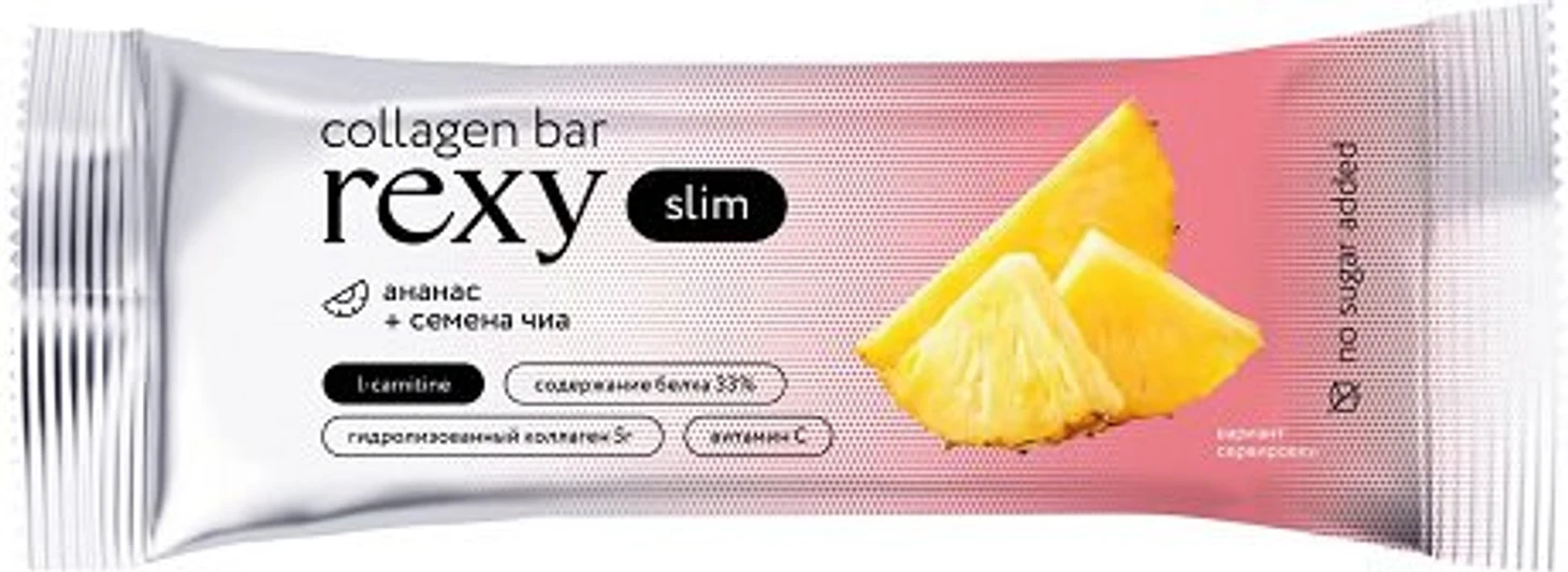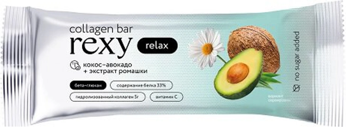 В одном батончике rexy — не только дневная порция коллагена, но и 33% высококачественного белка из Новой Зеландии. А для максимальной пользы и эффективности батончики усилены полезными ингредиентами, такими как ацерола, L-карнитин, гиалуроновая кислота.