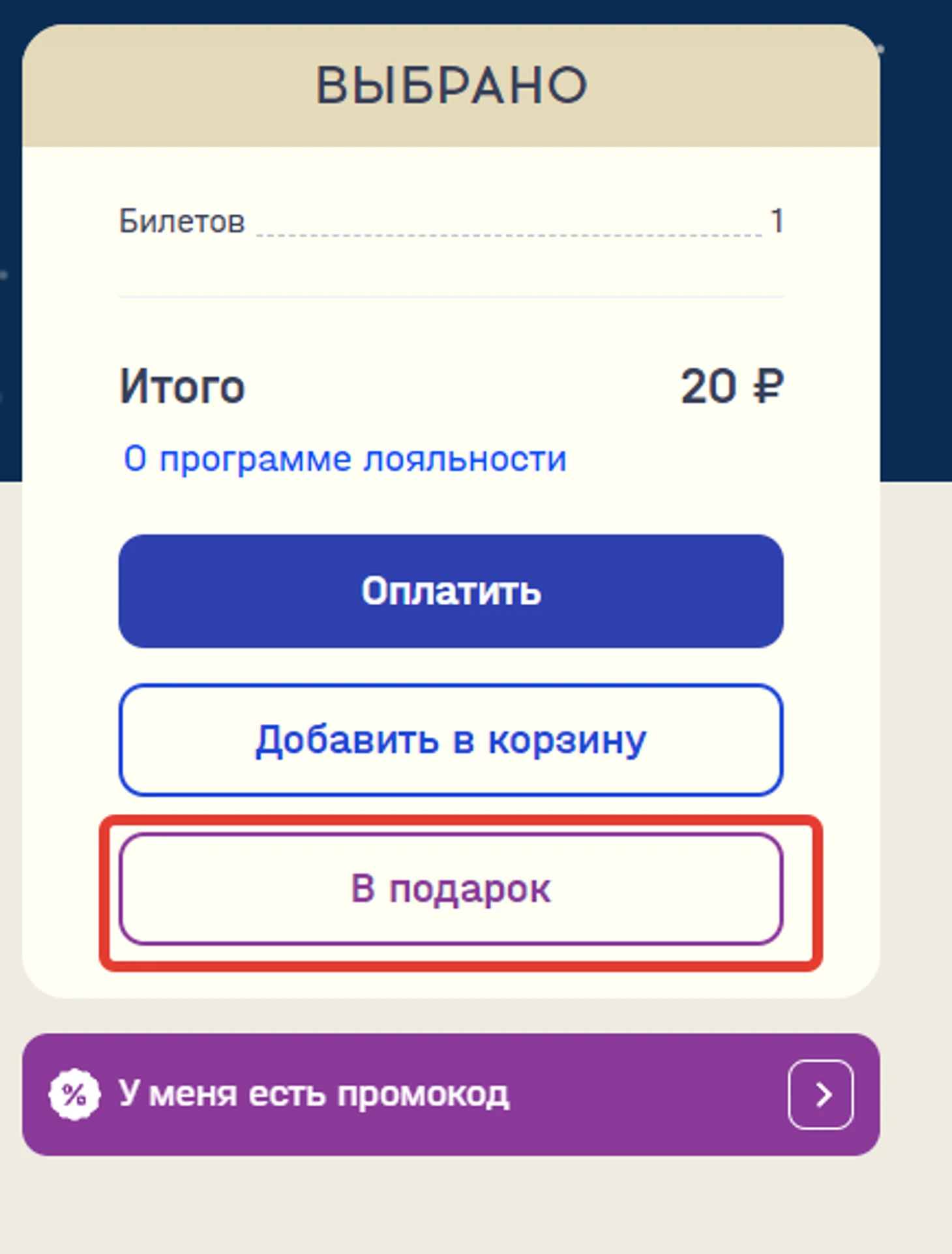 Для покупки билета другому человеку необходимо указать его номер телефона, при этом свой номер можно скрыть, и получатель не узнает, кто сделал подарок.