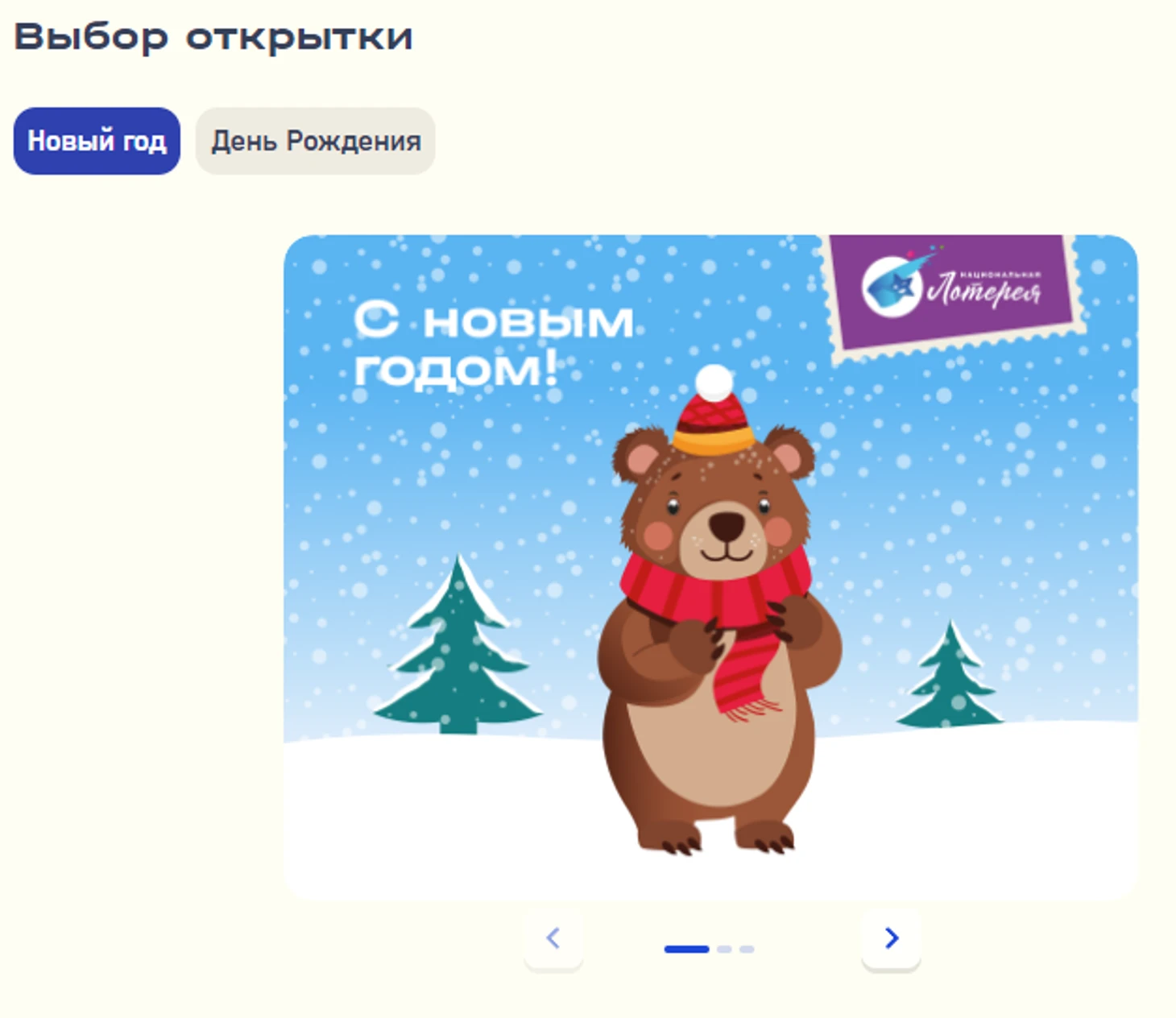Можно выбрать тематическую открытку: Новый год или День рождения.