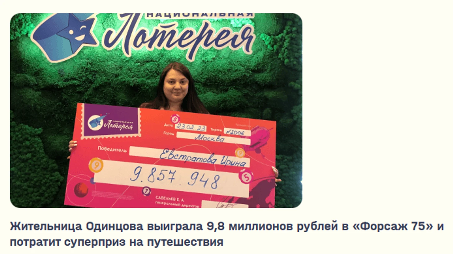 После идентификации забрать выигрыш можно на баланс внутреннего кошелька «Национальной лотереи».