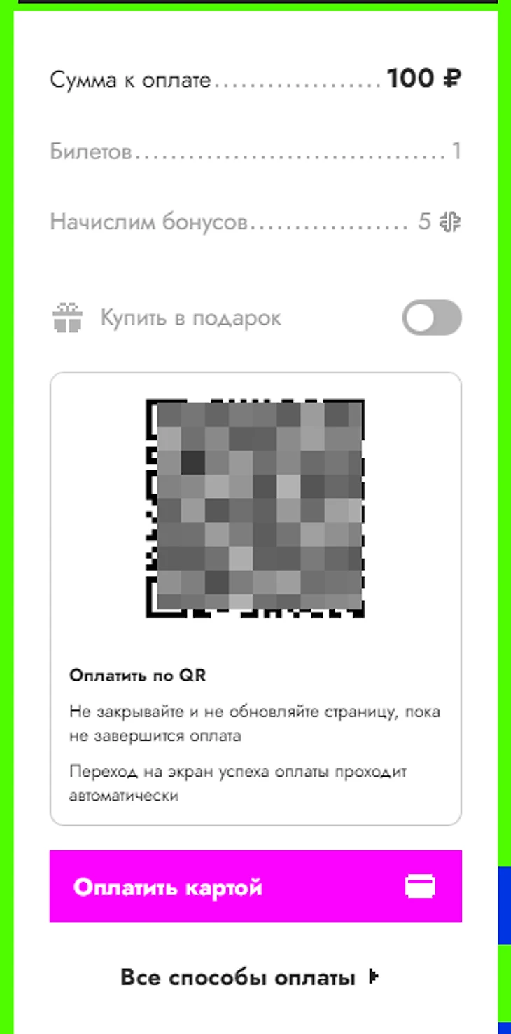 Оплатить покупку можно по QR-коду, который сразу появляется в корзине.