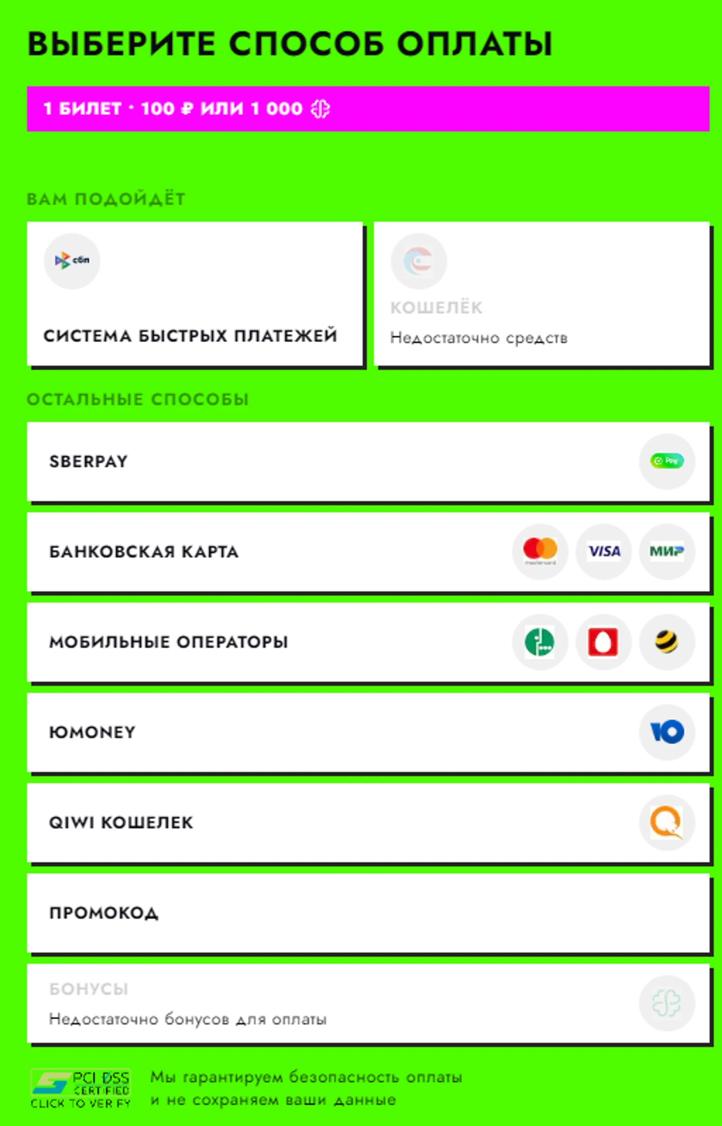 На картинке: все способы оплаты лотерейного билета, оплата бонусами и с баланса кошелька Столото доступна только зарегистрированным игрокам