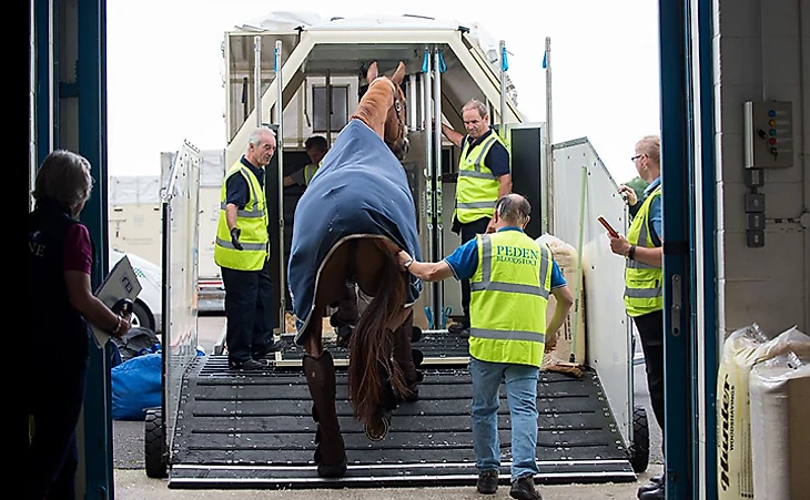 Перед тем, как подняться на борт, лошадям предложили перемешанные отруби, а в течение всего полета – сено и воду. Некоторые лошади предпочитают воду, разбавленную яблочным соком.
