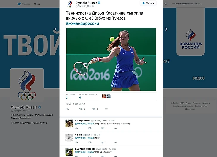 Чтобы наш онлайн не превратился в слишком серьезный и мрачный, минутка развлечения. Официальный твиттер Олимпийского комитета России в режиме live следил за первым матчем на теннисном турнире Дарьи Касаткиной. После двух сетов счет был 1-1, но соцредакция поспешила завершить игру: