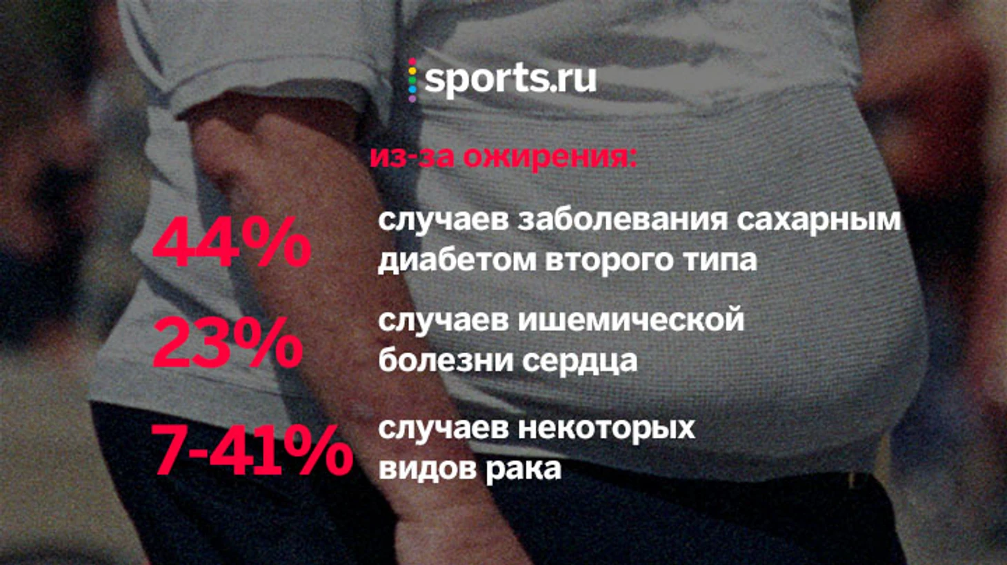 Ожирение долго считалось особенностью организма и было признано болезнью только в 1948 году. Тогда стало очевидно: на фоне избыточного веса может зародиться очень много болезней. Сейчас с ожирением связаны 44% случаев заболевания сахарным диабетом второго типа, 23% случаев ишемической болезни сердца, от 7 до 41% случаев некоторых видов рака.