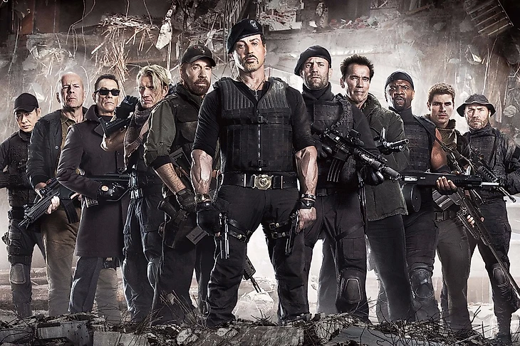 Героя Сталлоне зовут Барни Росс. Он отчаянно сражается в нечеловеческих условиях, не обращая внимания на количество врагов. Прямо как легендарный капрал в ноябрьскую ночь, сидя в окопе с умирающими товарищами.