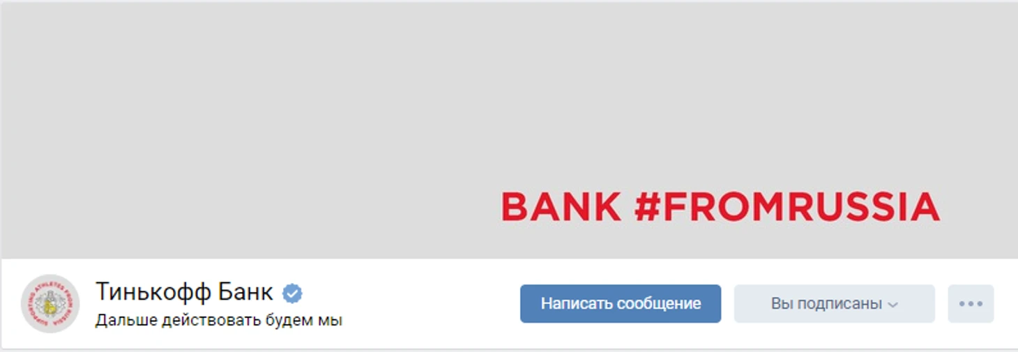 «Сбербанк», SPLAT, «Альфа-банк», «Мегафон», Mail.Ru Group и другие бренды и компании поменяли главное фото своих страниц в социальных сетях на аватарку с надписью "Supporting athletes from Russia", а на обложку поставили хэштег fromrussia на сером фоне.