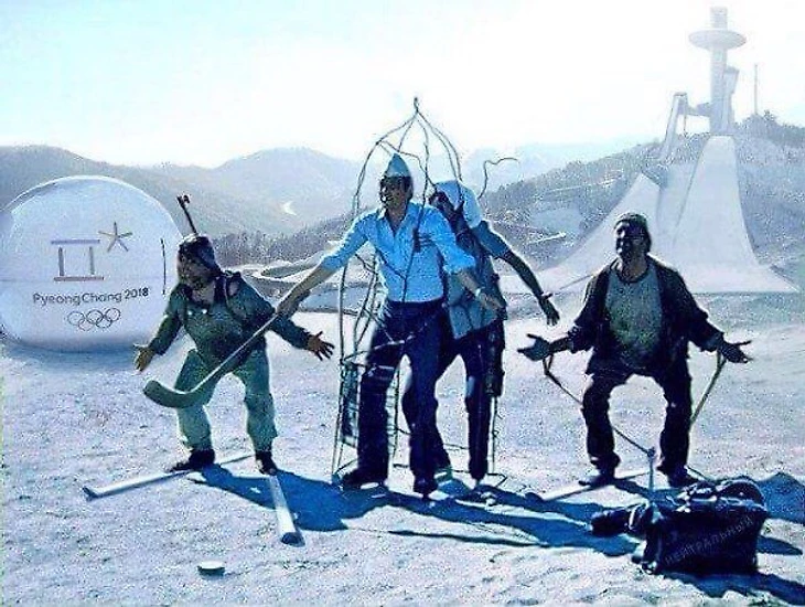 Нейтральные биатлонисты и нейтральные хоккеисты из России перед стартом: