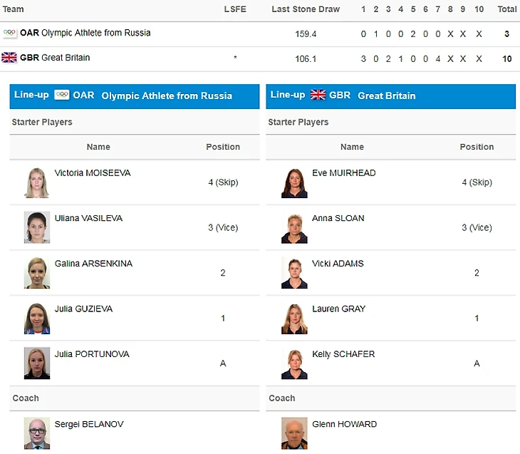 9.55. И закончился матч с участием сборной России. Команда скипа Виктории Моисеевой признала поражение в игре с британками. 3:10 после 7-го энда. Не было смысла играть дальше.